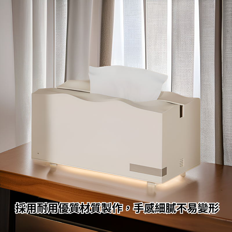 ● 多功能收納空間設計,除了收納抽紙外,還可放置遙控器、手機等小物,讓床頭整齊有序不雜亂。